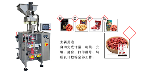 適用于花生米、魚皮花生以及顆粒類的包裝,而且也被廣泛應用于食品、醫(yī)藥、農(nóng)藥、化工、日化等顆粒行業(yè)的包裝。