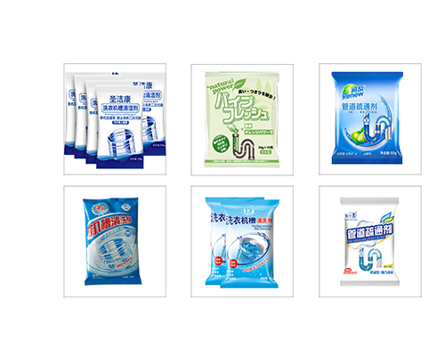全自動(dòng)洗衣槽清洗劑包裝機(jī)包裝樣品展示
