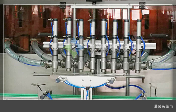 6、工作效率高,可搭配理瓶機、洗瓶機、直線旋蓋機、玻璃瓶貼標(biāo)機、自動噴碼機、收瓶機等組成一條自動化灌裝生產(chǎn)線;