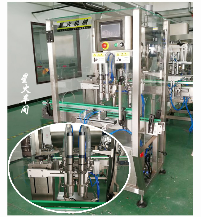 2.經(jīng)該雙頭顆粒顆粒醬料灌裝機(jī)灌裝后的瓶子表面無殘留;