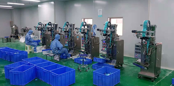 湖南可孚醫(yī)療科技發(fā)展有限公司生產(chǎn)車間一角-抑菌粉包裝機-袋裝藥粉包裝機應(yīng)用現(xiàn)場 此款