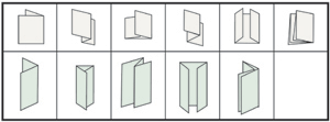 設(shè)計(jì)先進(jìn)、制造精良、可用于設(shè)計(jì)范圍內(nèi)各種不同尺寸和厚薄紙張的折疊、可折成圖例所示六種式樣。調(diào)整簡(jiǎn)便,送紙流暢,無(wú)級(jí)調(diào)速,輕巧高效。